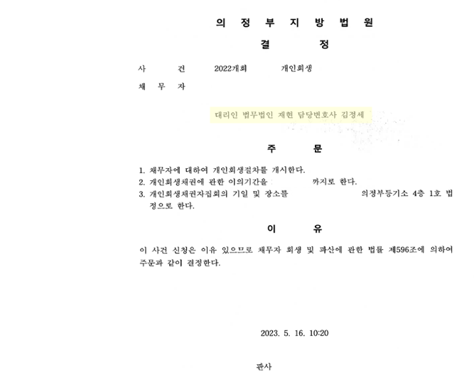 *2022.09.30. 접수 → 2023.05.16. 개시결정