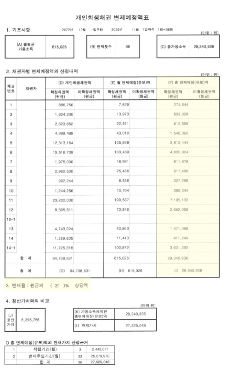 김00변제기간2022년 12월 ~ 2025년 11월(36개월/3년)총 채무94,738,531변제금815,026총 변제금29,340,936탕감금액65,397,595원금의 69% 탕감 김00님은 어린시절 넉넉한 편은 아니였지만 어려움을 겪을 가정환경은 아니였으나 성년이 될 즈음 아버지가 이른 퇴직을 하시면서 집안이 어려워지기 시작하였습니다. 아버지의 퇴직과 가정불화로 가세는 점점 기울었으며 이에 신청인은 전문대를 졸업하고 빠른 사회생활을 시작하였습니다. 첫 사회생활 후 급여를 받게 되자 그 돈에 대해 구체적인 사용처를 정하지 못하고 스트레스 해소등으로만 사용하였으며 신용카드 사용등으로 채무가 점점 불어나던 시점에서 건강악화로 인해 실직을 하게 되었으며 가족에게도 도움을 요청하지 못한 채 생활고에 시달리게 되었습니다. 이에 신속채무조정을 신청하였으나 계속 증가하는 채무의 악순환을 끊기 위해 개인회생을 신청하게 되었습니다.