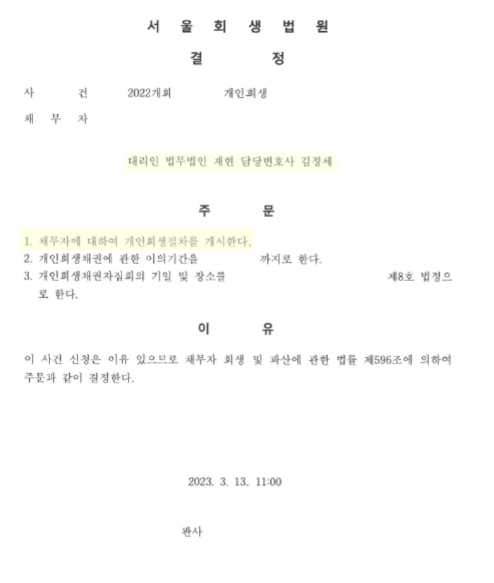 *2022.09.30. 접수 → 2023.03.13. 개시결정