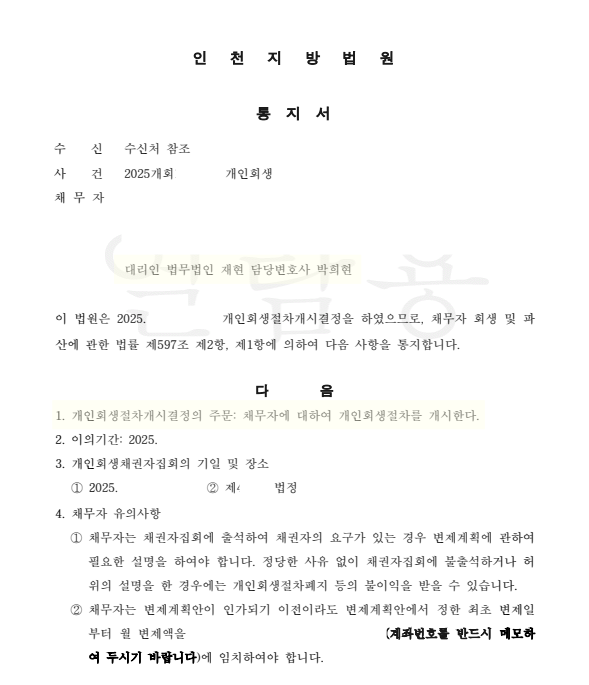 신청인의 경우, 일찍이 전기·도배 분야에 종사하며 정식 급여를 받지 못한 채 기술을 배우기 위해 어려운 생활 속에서도 성실하게 근로를 이어가셨습니다. 그러나 코로나 바이러스 확산으로 인한 경기 악화의 직격타를 맞아 일이 급격히 줄어들면서 소득이 현저히 감소하게 되었습니다.아울러 연세로 인한 건강상의 문제로 병원비 지출이 지속적으로 발생하였고, 수입은 거의 없는 상황이 장기간 이어졌습니다. 결국 생활비와 의료비를 충당하기 위해 은행 대출과 신용카드 사용으로 하루하루를 버텨가던 중, 배우자의 사업 실패까지 겹치면서 더 큰 금전적 어려움에 직면하게 되셨습니다.