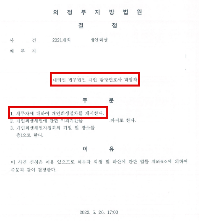 *2021.12.17. 접수 → 2022.05.26. 개시결정