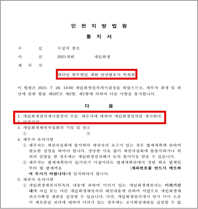 신청인의 경우, 채무가 오래되어 정확한 채무금과 채권사를 알 수 없었습니다.이에 저희 로펌은 신용조회를 통하여 채권사와 채무금을 확인하여 누락 되는 채권이 없도록 모두 채권목록에 반영하였으며, 신청인의 경우 최근 취업으로 인해 소득 확인이 정확하지 않은 점에 관하여 권고가 있었으나 급여명세서 및 급여 입금 거래내역서를 꾸준하게 제출해 소명하여 원리금 86% 탕감받을 수 있는 계획안으로 빠르게 개시결정을 받을 수 있었습니다.