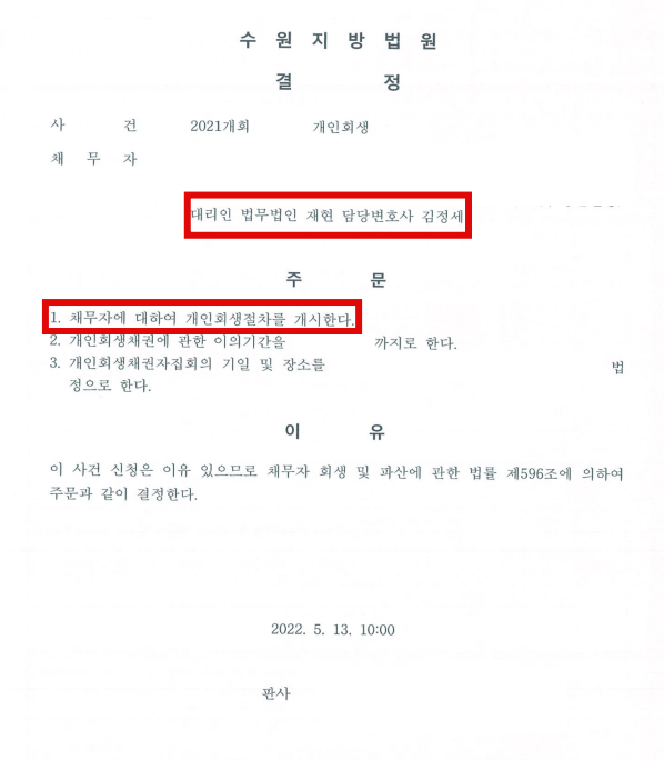 ※ 신청접수 : 2021.05.24 / ※ 금지명령 : 2021.05.25 / ※ 개시결정 : 2022.05.13