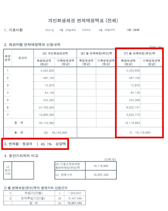 15년 파산면책 후 개인회생 재진행 원금의 55%탕감 성공!