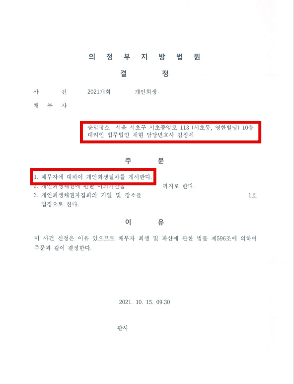 신청인은 대출금 대부분을 음주 및 게임으로 사용하였고 낭비성 채무가 과도하였지만 생활비로 주장하여 청산가치에 반영되지 않았습니다. 대출금의 사용 용도에 대한 소명과 현 직장에 대한 예상 퇴직금 금액, 자동차의 청산가치를 재산정하여 반영한 후 사건이 진행되었습니다. 또한, 법원에서도 신청인의 사정을 참작하여 단 한 번의 보정권고로 개시 결정이 내려지게 되었습니다.