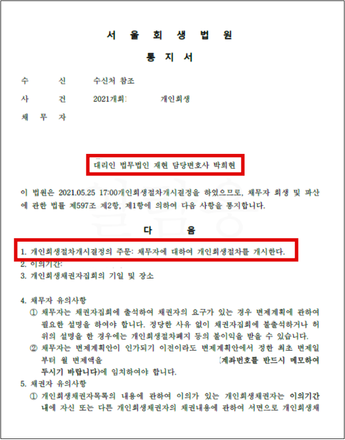 신청인의 경우 미혼으로 신청 당시 부모님 모두를 부양가족으로 포함하여 진행되었으며, 특별한 사유가 아니라면 부양가족으로 인정받기 어려우나 신청인의 진술서 및 부모님의 진단서, 자매의 소득 여부 등 저희 로펌만의 노하우로 꼼꼼하게 소명하여 접수일 기준 2달만에 부양가족 3인으로 인정받은 변제계획안으로 개시결정을 받을 수 있게 되었습니다.