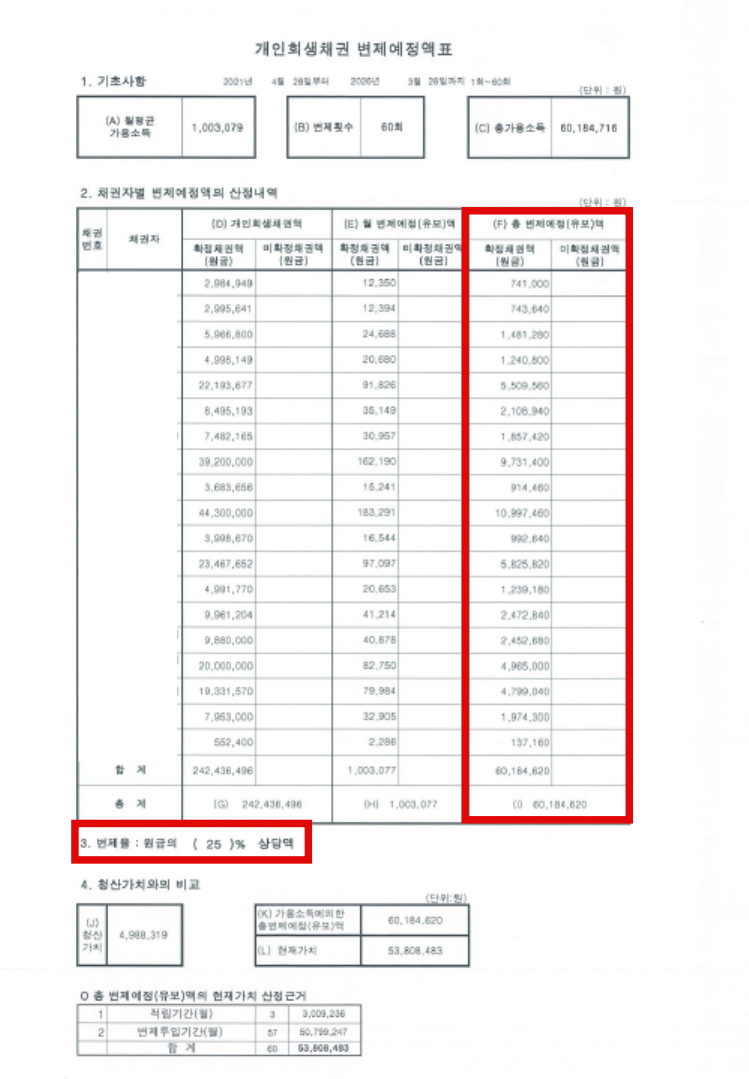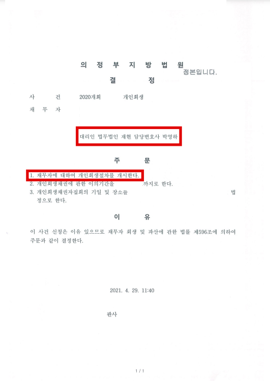 신청인의 경우 배우자와 함께 사업을 운영하고 있어 배우자와의 거래내역이 많았으며 여행사를 페업하기전에는 고객들 환불금 지급을 위해 개인에게 이체한 내역이 많았습니다. 배우자와의 거래는 거래내역서에 사업자금 및 생활비로 명확하게 소명을 하였으며 개인에게 이체한 내역등은 여행사 장부를 통해 환불금을 소명하였습니다. 원금대비 변제율이 낮아(25%) 법원에서 변제금 상향을 요청하였으나 사건이 60개월로 진행되는 점, 배우자 또한 회생을 같이 진행하고 있는 점을 주장하여 변제금 상향없이 개시결정이 내려지게 되었습니다.