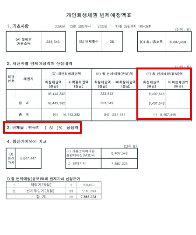신청인의 경우 일을 하였던 기간이 짧고 잦은 이직으로 인해 직장을 구하기 어려워 부의 사업장에 정식취업을 하였으며 근로계약서,직장관련진술서, 4대보험신고확인증 등으로 객관적인 급여산정기준과 근로사실을 법원에 소명하여 직장으로 인정되었습니다. 또한 도박으로 사용된 유흥비의 절반만 신청인의 청산가치(재산)으로 산정하여 사건이 진행되었으며 한번의 보정권고를 통해 개시결정이 내려지 되었습니다.