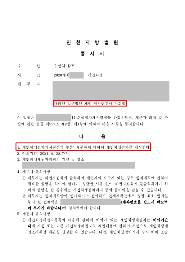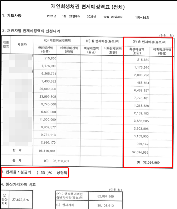 이 사건에서 무엇보다도 중요한 것은 대출금 사용처 소명이었습니다. 저희 법인에서는 변제금을 최소로 산정하기 위해 채무사용일람표를 작성하여 법원에 대출금 사용내역을 빠짐없이 꼼꼼히 소명하였고, 그 결과 사행성 채무임에도 불구하고 높은 면책율을 받아 낼 수 있었습니다.