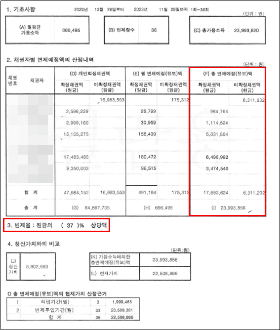 정00님의 경우 개인회생 접수 당시 배우자가 임신을 한 상태였고 개시결정 전 출산 예정이었습니다. 저희 법인에서는 배우자 포함 2인 최저생계비로는 개인회생 변제금 납부와 생계유지가 어렵다고 판단하여, 장래에 태어날 태아에 대해서도 법원에 부양가족으로 산정을 주장하였습니다. 법원에서는 저희 법인의 주장을 받아드려 정00님은 태아를 포함한 3인 최저생계비를 인정받게 되었습니다. 하여 정00님은 고소득자임에도 불구하고 적은 변제금과 높은 면책을 받을 수 있게 되었습니다.