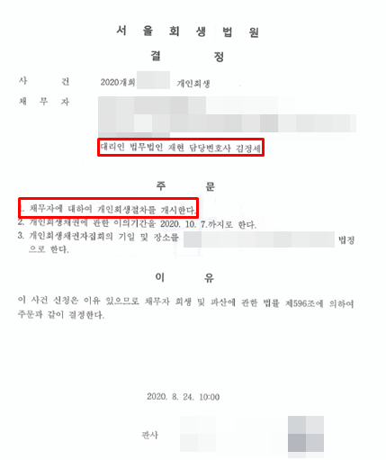 1회 보정권고, 2달만에 개시결정 원금의 66% 탕감 성공!