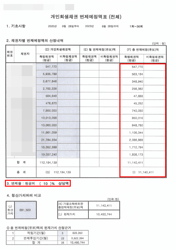 신청인은 재신청으로 인해 금지결정은 불허되었으나 다행히 유체동산압류에 대한 중지결정은 허가가 되었습니다. 급한 경매를 막고 사건을 진행하였으며 급여를 현금수령하는 등 월 소득을 인정받기 어려웠으나 근로계약서, 재직증명서, 사업주직인이 날인된 현금수령 확인서를 제출하여 월 실수령액을 소득으로 인정받아 사건진행할 수 있었습니다. 최근 대출금 중 주식과 비트코인에 사용된 금액에 대해 반성하고 있다는 내용을 강조하여 해당 금액들이 청산가치(재산)으로 반영되지 않은채 변제율 10%로 개시결정을 받을 수 있었습니다.
