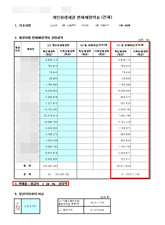 신청인은 본인의 소득으로는 감당할 수 없을 정도로 불어난 채무를 구제받고자 개인회생을 신청하게 되었습니다. 과거에 운영했던 사업의 실패로 인하여 발생된 채무였으며, 본인의 소득 대비 부가가치세, 지방소득세, 건강보험료, 연금보험료 등의 우선변제 채권액이 컸지만, 법원에 개인회생을 신청접수한 후에 1번의 보정권고를 거쳐 개시결정을 받게 된 사건이었습니다. ※ 보정권고: 신청서 검토 후, 법원의 추가 서류 요청 및 문의사항에 대한 답변 요구