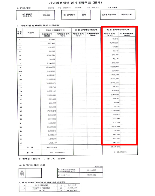 이OO변제기간(36개월/3년)총 채무165,059,925원변제금853,894원총 변제금30,125,376원탕감금액134,934,549원원금의 82% 탕감