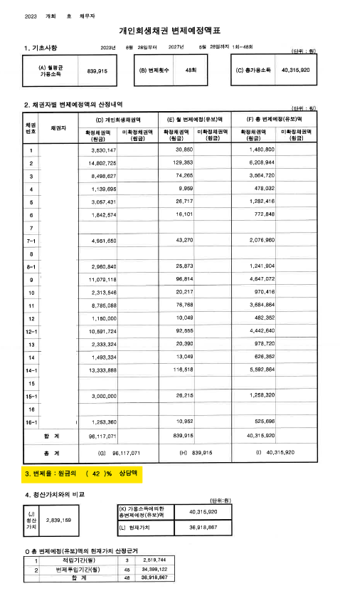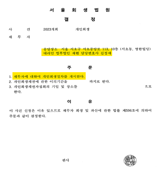 4개월 만에 빠른 개시결정, 원금의 58% 탕감 성공!