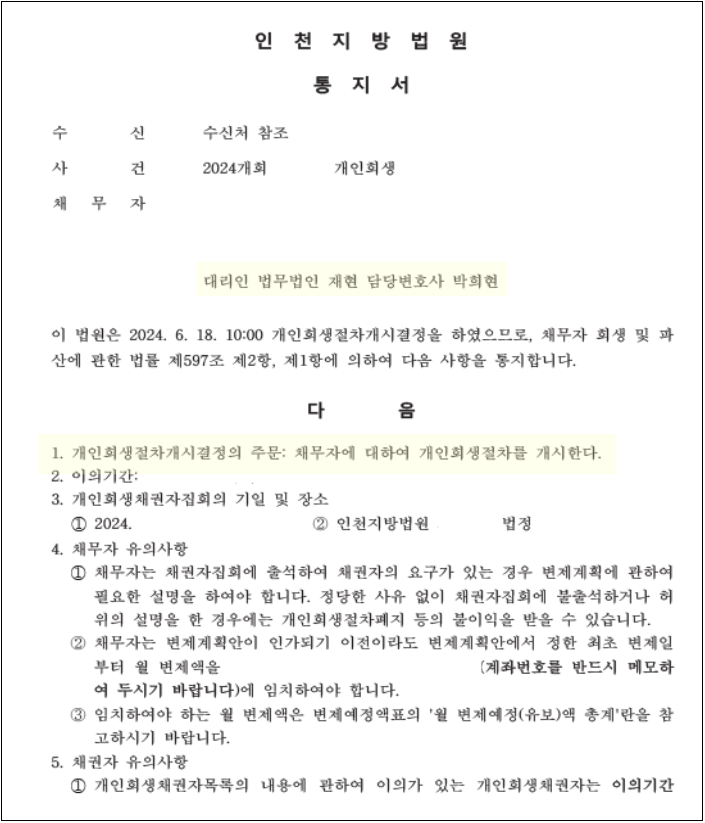 ※ 신청접수 : 2024.01.30 / ※ 금지명령 : 2024.01.31 / ※ 개시결정 : 2024.06.18
