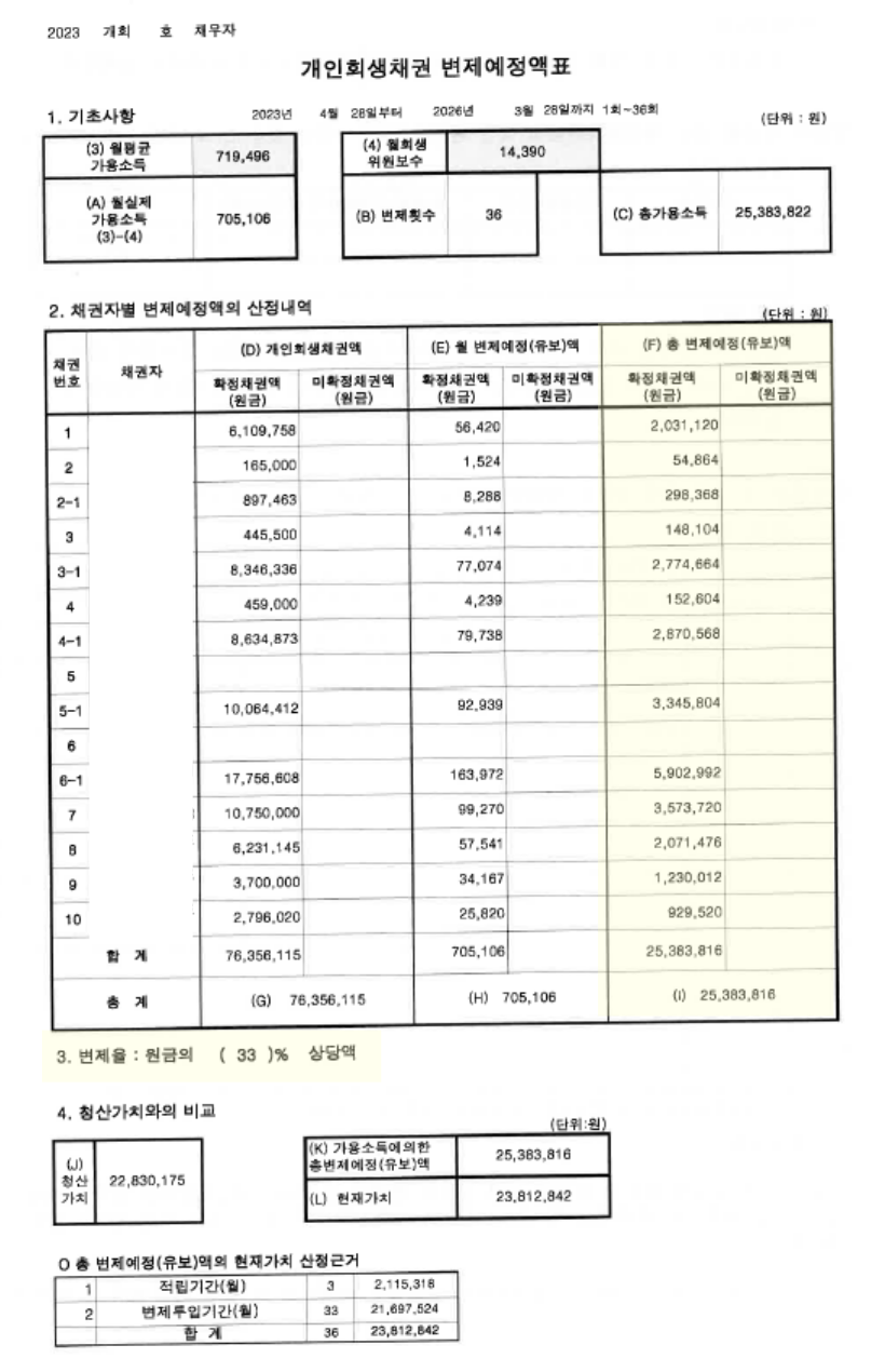 신청인의 경우 최근 대출금이 없으며 이전에 수령하였던 대출금 중 일부는 기존 채무 변제로 사용되었고 나머지 금원은 임대료, 직원들의 급여, 사업 재료 구매 등 전반적으로 사업장을 운영하는 비용으로 사용되었습니다. 대출금의 사용처에 대해 보정권고가 내려져서 관련 자료들을 토대로 모두 소명하였으며 67% 탕감 받는 변제계획안으로 사건이 진행되었습니다.